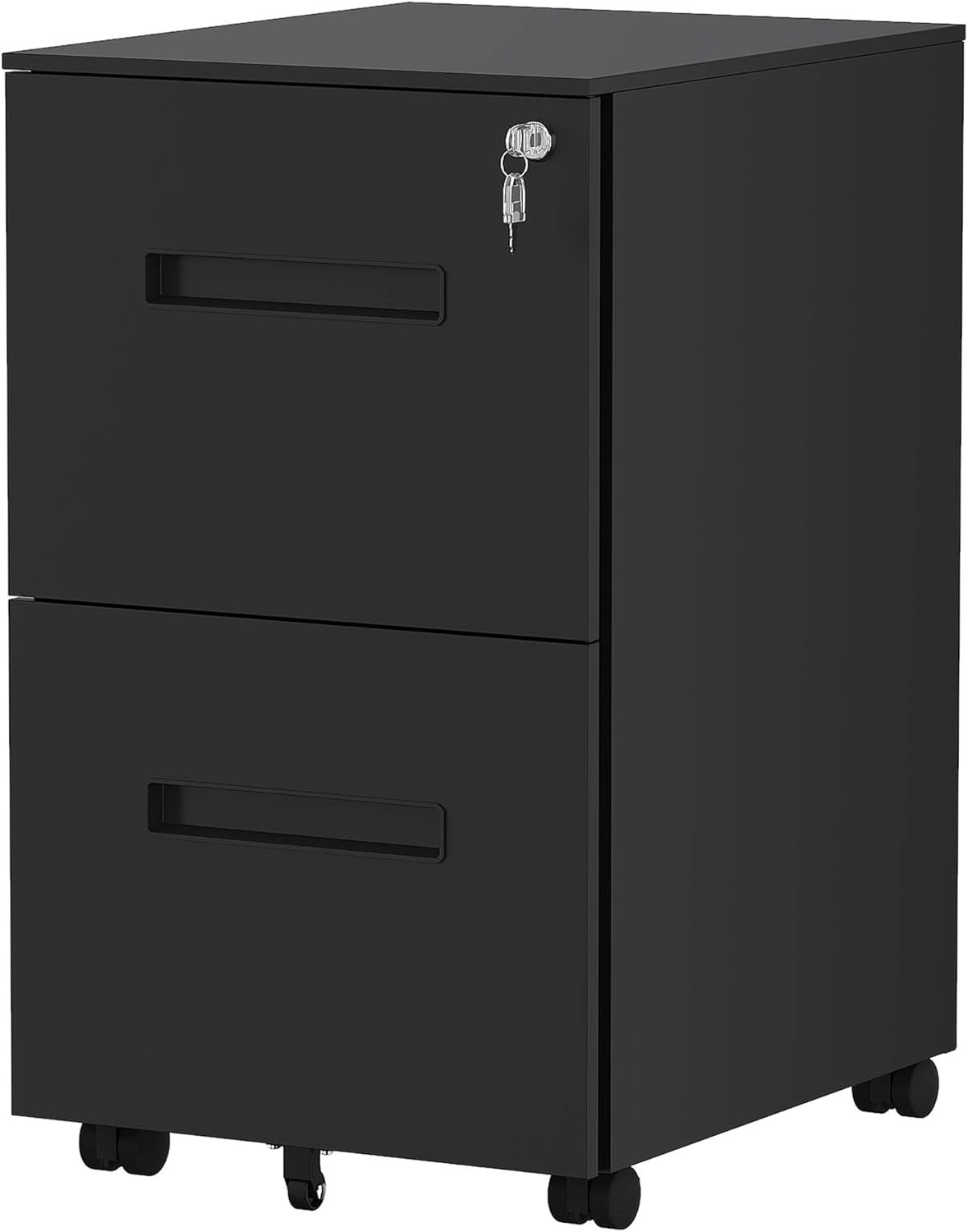 H) by home decorators collection. 2 drawer mobile file cabinet with lock, under desk metal file cabinet for legal/letter/a4 file, fully assembled except wheels, black 15l x 19.6w x 24.8h. Sold and shipped by spreetail. Bottom locking drawer securely locks both drawers. Rated 4.5 out of 5 stars.